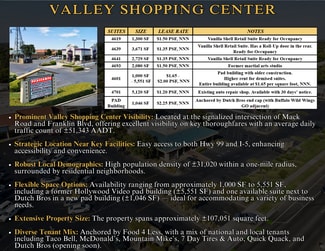 Whether you’re expanding a service business, opening a restaurant, or seeking high-visibility retail space in a busy neighborhood center, Valley Shopping Center provides excellent flexibility and visibility for a wide range of users.
