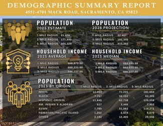 Valley Shopping Center offers excellent exposure at one of South Sacramento’s most traveled intersections — Mack Road and Franklin Boulevard. This established retail hub serves a dense residential trade area with over 31,000 residents within one mile and convenient access to both Highway 99 and I-5. The center features a strong tenant mix anchored by Food 4 Less, with McDonald’s, Taco Bell, Mountain Mike’s, and 7 Day Tires among its co-tenants.