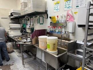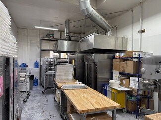 2016, the interior is fully equipped with high-end kitchen amenities, including a new walk-in freezer, walk-in refrigerator, ovens, hoods, sinks, and prep areas. The building also features restrooms, high ceilings, and abundant natural light, offering a bright and inviting atmosphere.