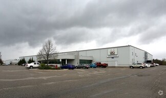 • Recently renovated industrial facility with architectural block and metal cladding construction.
