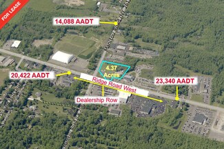 4.37-acre property located at the northeast corner of W. Ridge Road and Manitou Road in the Town of Greece. There is a 522+/- square foot building with a full basement on site currently used as a car sales office. This property has excellent visibility and access. The intersection is controlled by traffic light.