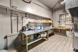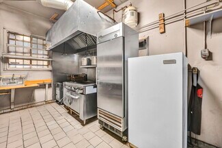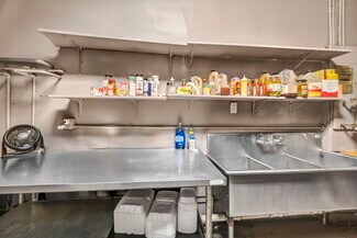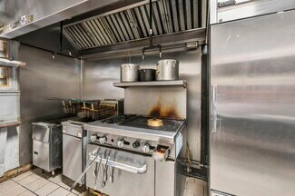 • Operational Commercial Kitchen – Outfitted with gas stove, hood, deep fryers, refrigeration, prep/storage areas.