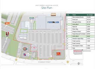 West Market Shopping Center offers a prime retail leasing opportunity in Greensboro, NC, anchored by a high-performing Food Lion. This well-positioned center sits at a signalized intersection along West Market Street, ensuring excellent visibility and accessibility. The property benefits from strong daily traffic counts of approximately 16,000 AADT and serves as a key retail destination within an active commercial and employment hub.
