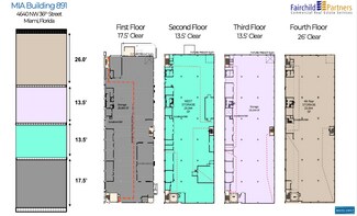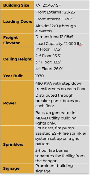 The facility is located on-tarmac at the north side Miami International Airport, it’s legal address being 4640 NW 36th Street, Miami, FL 33166. The +/- 120,457 ft² single-tenant building was built in 1970 and consists of 4 floors connected by a freight elevator, each being approximately 30,114 SF. There is recessed grade loading in the front of the building and an additional grade door on the east side of the building in the fire lane. There is also an airside loading door that runs through the freight elevator.