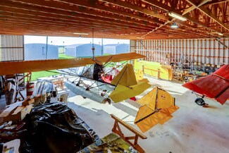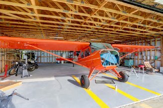 • COMMERCIAL IMPROVEMENTS: Fifteen 40’x40’ hangars, two 60’x60’ hangars, a 60’x120’ building/shop with storage building, all individually metered for electricity, and all presently rented. All hangars are accessed by hard surface taxiways. A fuel depot that provides 100LL aviation fuel is accessed by a large concrete apron—is self-serve and computer coded. A 2550 SF three-story community center/event venue with observatory decks, wet bar bar, chairs, tables, three restrooms, and large stabilized parking area.
