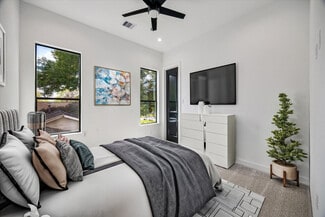 Prime investment opportunity less than a mile from Downtown Houston and the East River Development. A rare offering of modern luxury, this impeccably designed duplex is located in one of Houston’s most prestigious and rapidly growing areas. Each residence features 3 spacious bedrooms, 2.5 designer baths, and a private 2-car garage. Interiors showcase sleek porcelain tile, a striking glass staircase, expansive 8-foot windows, and a statement fireplace. The chef’s kitchen is appointed with flat-panel soft-close cabinetry, premium stainless steel appliances, built-in microwave, and an oversized quartz island. The primary suite offers a private balcony and spa-inspired bath with dual vanities, freestanding soaking tub, walk-in shower, and boutique-style closet. Secondary bedroom and bath provide added privacy. Less than a mile from Downtown and East River, with easy access to I-10, Hwy 59, and Beltway 8.