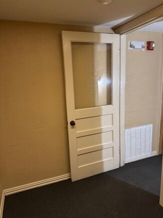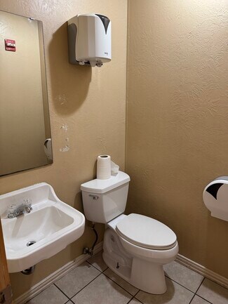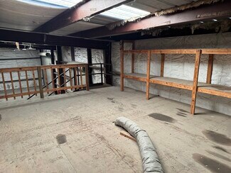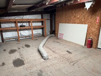 3,400 square foot metal building constructed in 1993. Two-story office area with restrooms, break rooms, multiple file rooms/storage areas, kitchen, and lobby. Upstairs loft over first-floor office opens into spacious skylit insulated shop with 14' wide and 8' wide overhead doors. Fenced-in lot has two wide chain-link gates at front and privacy fencing at rear.