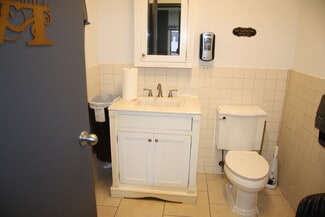 The property is equipped with two bathrooms, a slop sink, and an overhead door with garage access for convenient loading and storage. Street parking is available in the surrounding area, making it accessible for clients and staff.