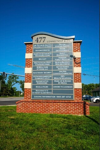 Several blocks away are UConn Health and Trinity Health Of New England.  Building landlord recently re-modeled, improve facade to the exterior pylon signages & interior common hallways in Summer 2024.  Signage on CT Blvd is available for advertise.  Building landlord is in the process of building a luxury banquet hall & conference events venue in 5,500 sf corner lot.