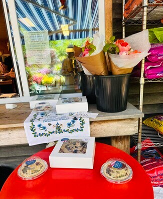 Customers stop in for a locally baked pastry and wander through the fresh local produce and large selection of plants, rugs, pet supplies, soils, fertilizers, seeds, tools, pots, and whimsical yard art!