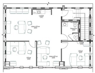 Each suite has private entry with private staircase, 2 offices, private restroom, an open area, and break area.