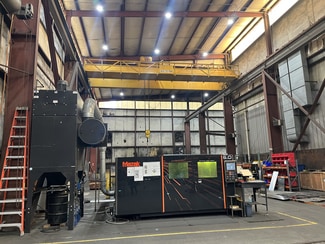 Freestanding, crane-served industrial facility. The total size is 56,531 SF, which includes a separate 5,005 SF warehouse, on a 4.4 acre concrete site. (7) 20' x 20' drive-in doors: (6) on main building & (1) on smaller warehouse Cranes: (2) 40-Ton, (1) 15-ton, (4) 10-ton & (10) .5-ton jib cranes; hook height is approximately 19' at center bay & 30' at exterior bay Ceiling Height: 23' - 41' Roof is standing seam and 50% coated in 2025 Fenced concrete storage yard LED lighting and (8) 48" & (1) 60" ventilation fans