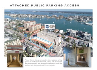 As a prominent retail and dining destination, Pelican Walk Plaza houses popular establishments like Hogan’s Beach Shop, Clearwater Comedy Club, and Hurricane Eddie’s, attracting a steady stream of visitors. Ownership has invested more than $2M in improvements since 2018, creating a vibrant atmosphere with diverse offerings that enhance the overall appeal of the beachfront, making it a central hub for shopping and dining. Additionally, the plaza is directly connected to the only parking garage on North Clearwater Beach (700 spaces), serving both beachgoers and plaza customers, with pedestrian crosswalks on either side providing safe, direct access to and from the beach. This connectivity delivers a constant, built-in flow of beachbound foot traffic, ensures reliable and convenient parking for customers, and captures both planned visits and impulse spending from pedestrians moving directly between the garage, the retail center, and the beach, significantly boosting visibility, dwell time, and sales potential for tenants.