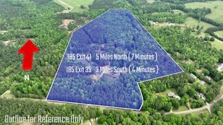 This property offers approximately 53 acres of level land located on Polk Road near Moreland, Georgia, just five minutes from I-85. The lot features a mix of beautiful hardwoods, cleared areas, and partially wooded sections, creating a scenic and versatile landscape. It includes two catfish ponds, a bold, clear stream, and a possible site for a third pond, making it ideal for recreational use or development. The property is fenced and provides 866 feet of paved county road frontage, ensuring easy access. Existing structures include an unfinished three-bedroom, two-and-a-half-bath home with a full basement overlooking the ponds, as well as outbuildings, a poultry coop, and a workshop. Wildlife such as deer is abundant, adding to its appeal for hunting or outdoor enthusiasts. Utilities include electricity and a well water source. The modular home currently on-site will be removed within 60 days after closing, and lumber will be cleared by the seller. This tract is well-suited for residential, recreational, or timber use, offering privacy and natural beauty in a prime location.
