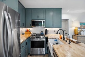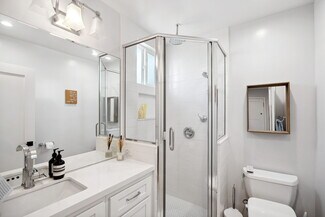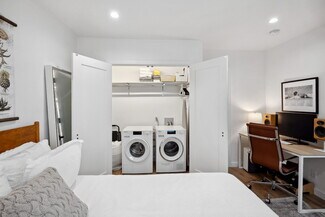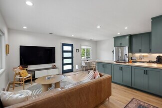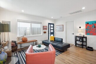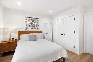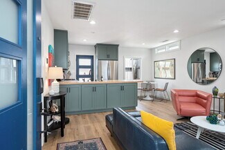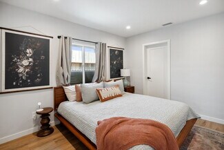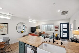 The rear 1-bedroom, 1-bathroom unit mirrors the same elevated aesthetic with a functional, flowing floor plan, including its own washer & dryer, central heat & air, and stainless-steel appliances, perfect for a variety of living arrangements. Additional amenities include 3 off-street parking spaces, custom window treatments, tankless water heaters, wired for ethernet & security cameras, recessed lighting throughout, Ecobee thermostats, and smart locks.