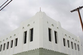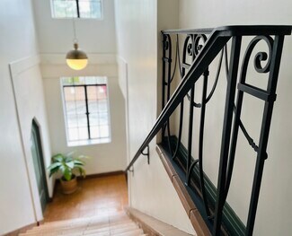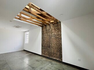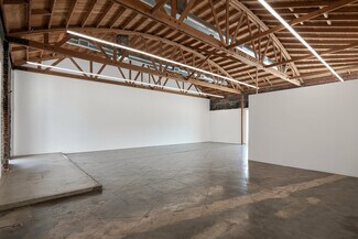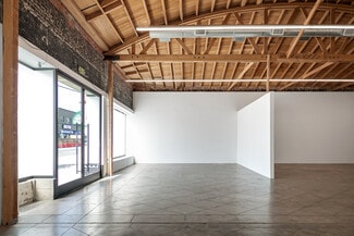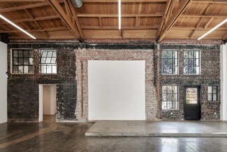 This restored art deco building was originally constructed in 1930 and features dramatic 14' exposed wood truss ceilings, large windows, and a small private courtyard in the rear.