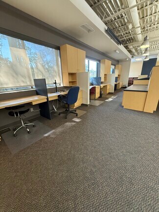 • HVAC in 1600sf of warehouse space including a locking cage area. outdoor barbecue area. 6 corner offices and 13 workspaces.