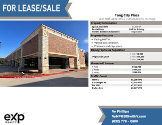 Unlock the potential of your business with this exceptional retail property located at the heart of Missouri City and Sugar Land! Situated on bustling Highway 6, this modern shopping center—built in 2018—offers unparalleled visibility and access in one of the area’s most vibrant commercial corridors