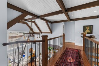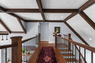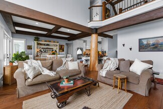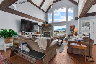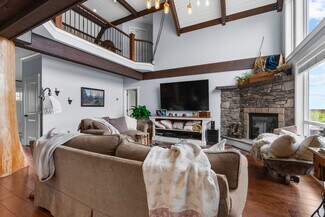 An engineered timber beam spans the heart of the home—a testament to the structural quality and craftsmanship. Comfort is ensured year-round with a high-efficiency heat pump, A/C, forced air furnace, and a natural gas fireplace.
