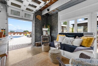 French doors off the dining area lead to a bonus space—ideal as a man cave, games room, or media lounge—complete with a wood stove. This opens to your outdoor retreat where the comforts of the home extend into a serene natural setting.