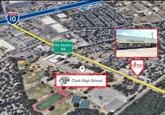 This Class A building sits on a spacious 0.59-acre corner lot with exceptional visibility and traffic exposure on De Zavala Road. Strategically positioned directly across from Tom C. Clark High School, one of the largest 6A campuses in Northside ISD with 2,835 students and over 120 classrooms. The property benefits from constant student, parent, and staff traffic throughout the day and within walking distance of Locke Hill Elementary School, serving 522 students in Pre-K through 5th grade. The corner traffic light location provides maximum visibility while offering easy access to major highways including Loop 1604 and I-10 (under one mile away).
