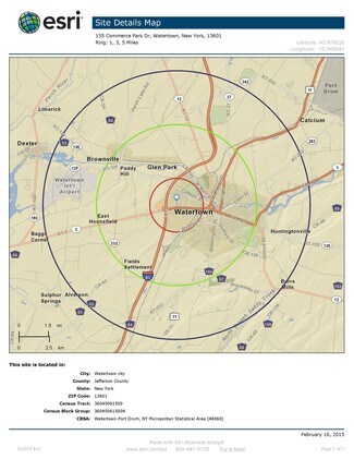 Located on Commerce Drive, a dedicated city street which connects the park to Watertown's two major East/West thoroughfares, Arsenal Street and Coffeen Street.