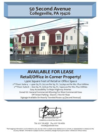 2nd Floor: Suite 4 – 1,900 Sq. Ft. /$17.00 Per Sq. Ft. / $2,692.00 Per Mo. Plus Utilities
