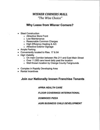 • High Visibility from Carpenter Ave., a major connection between Rte. 211 and East Main Street.