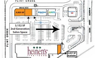 Up to 7,927 SF available at the end cap along with a 2,200 SF second generation restaurant + Drive-Thru opportunity at The Shops at Flint Creek in northwest suburban Barrington, an affluent suburb located approximately 38 miles northwest of Chicago. The space is 3,152 SF and provides an opportunity to join a grocery anchored center (heinen's), along with co-tenants Athletico, Club Pilates, Meatheads, Coldwell Banker, and Amita Health. The center is well located less than one (1) mile northwest of the Barrington train station and centrally located within town. The average household income within a three (3) mile radius is $175,000 with nearly 25,000 people in the area. Other neighboring retailers include Jewel-Osco, Walgreens, CVS/Pharmacy, Barrington Bank & Trust, BMO Harris Bank, Egg Harbor Cafe, Bluemercury, Nekter Juice Bar, Moretti's Barrington, Einstein Bros. Bagels, Starbucks, McDonald’s, Verizon, Viking Ski & Patio, among many others.