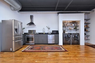 • Authentic 1920s warehouse conversion with exposed brick and original hardwood floors.