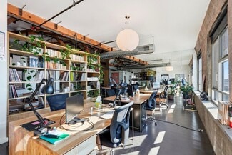 The central piece of this space is the open gourmet kitchen w/ SS appliances & Caesarstone countertops, large pantry, and comes with plenty of storage. There are also 2 large bathrooms, one with a built-in washer/ dryer unit. Since this space is a L-shaped floor plan, many lay-outs are possible. Adding a mezzanine is one of those possibilities as well and could create additional live/work space.