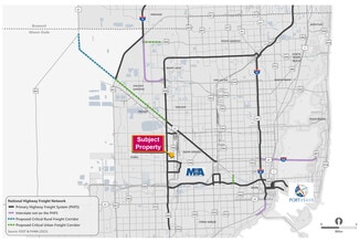 This strategically located 4.24-acre outdoor storage site offers approximately 300 feet of frontage on NW 72nd Avenue in unincorporated Miami-Dade County. The property is ideally positioned near key transportation hubs, including the FEC rail yard, the South Florida Logistics Center, and Miami International Airport. With an average daily traffic count of 36,500 (AADT), the site provides strong visibility and access for a wide range of industrial and logistics uses. Easy access to the Palmetto Expressway.