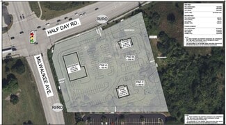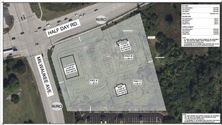 HIGH PROFILE LOCATION for restaurant, bank, coffee shop, drug store, fast food with drive-through. FULL COMMISSION TO TENANT BROKERS. McDonalds to the north is ranked 84% nationally for visits - while not on a strong hard corner. Walgreens to the north is ranked 83% nationally for visits - while not on a strong hard corner. Just think how strong YOUR business can be located AT the SEC Milwaukee Avenue and Half Day Road in Lincolnshire!