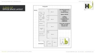 In addition to the +/- 2,000 SF office space, there are currently two (2) “individual executive office suites” on the 1st floor with full-service leases which includes utilities & internet. Each individual private office leases for $800 per month. For an additional $50 per month, Tenant would be allowed signage on the brand new digital sign along Southwest Drive. These offices share a common breakroom & restroom on the 1st floor. Lease terms are negotiable.