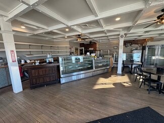 This property is the former home to long established Garguilo's Bakery, a staple in the town of St. James. This listing offers a rare commercial opportunity in a highly visible and well-traveled location at the prime corner of Lake Avenue and Railroad Avenue, directly across from the train station. The site includes a 2,467 square foot main building with a full basement featuring 8-foot ceilings, plus an additional 414 square foot storage building. The main level offers 9-foot ceilings, hardwood flooring, central air conditioning, steam radiators, gas heat, and three phase electric service with four hundred amps. The lower level provides approximately 2,400 square feet of usable space, ideal for storage, prep, or operational support. The building sits on a quarter acre lot totaling 10,890 square feet and was constructed in 1963 with masonry concrete block construction, brick siding, and a flat roof. Utilities include community water and private septic. The property features one half bath, 14 on-site parking spaces, and handicap accessible elements. This location benefits from strong visibility, steady foot and vehicle traffic, and immediate access to transportation. This is an excellent opportunity for an owner user or investor seeking a well-located commercial building with existing restaurant approvals and flexible potential for redevelopment or continued commercial use.
