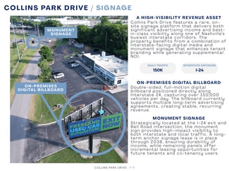 ON-PREMISES DIGITAL BILLBOARD - Double-sided, full-motion digital billboard positioned directly along Interstate 24, capturing over 150,000 vehicles per day. The billboard currently supports multiple long-term advertising agreements, creating stable, recurring revenue.