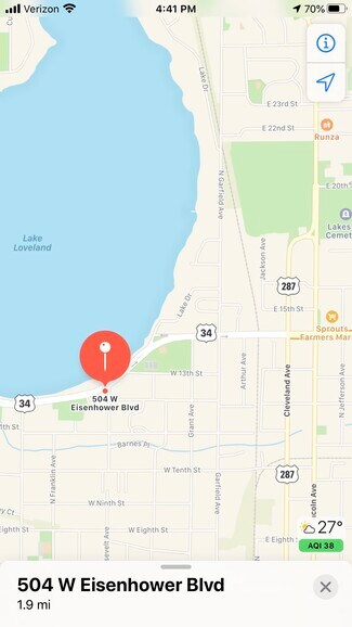 Attractive three-story office building with excellent visibility and direct frontage on Eisenhower Blvd, offering scenic views of Lake Loveland and the Front Range.The main level (2,036 SF) includes a 523 SF gym, two office suites, storage, janitorial space, multi-stall restrooms, and a break area.The second level (2,137 SF) features two executive offices, five additional offices, a large conference room overlooking the lake, an administrative area, single restroom, storage, and break area.The third level (2,137 SF) offers two street-facing offices with expansive lake views, five additional offices, a large meeting room, single restroom, and storage.The building features upgraded LED lighting and network infrastructure throughout, with fiber service to the building. Includes 11 onsite parking spaces with additional overflow parking available.