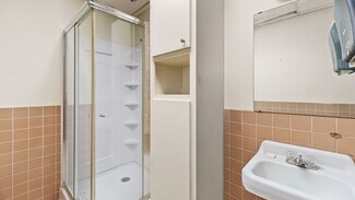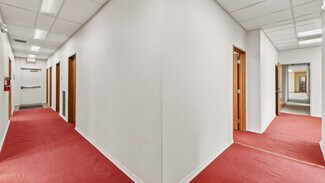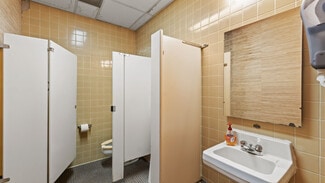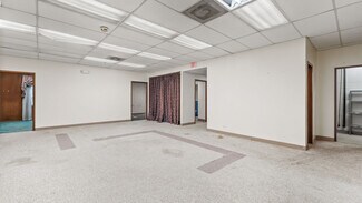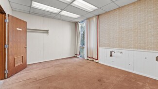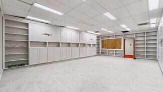 From the moment you enter, the interior impresses with large glass storefronts flooding the lobby with natural light and a layout primed for reconfiguration. The open plan includes multiple offices, conference or meeting rooms, support spaces, and a versatile large rear area with built-in shelving and display walls — ideal for administrative, educational, or multipurpose functions. Hallways and private offices extend toward the rear, offering privacy and good circulation. Mechanical, electrical, and lighting systems appear serviceable and in place, making the building ready for a cosmetic refresh or full build-out depending on tenant needs.