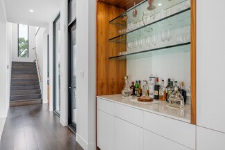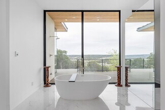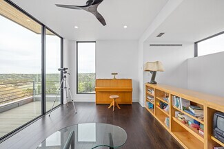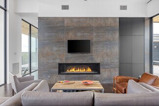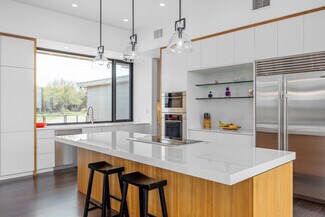 At 1900 ft, the Main House offers panoramic views, breezes, & sunrise/sunset spots. Crafted by John-West Stoddard, it blends elegance & functionality. Completed in 2020, the 4246 sq ft home features a single-level design with a xeriscape courtyard, office, loft bedroom, primary suite, & guest casita. With 4 baths & a 2-car garage, it balances private & shared spaces, seamlessly connecting indoors w/outdoors. Exterior features include metal siding, stucco, Shou Sugi Ban wood siding, & a standing seam metal roof. Inside are 12-ft ceilings, floor-to-ceiling windows, ash wood flooring, & motorized shades. The living area boasts a gas fireplace & built-in cabinets. The dining area features an Odeon chandelier, & the kitchen includes Wolf appliances & Dekton countertops. A walk-in wine room, office, gym area, & guest casita offer luxury. Outdoors, enjoy composite decking, gas firepits, & custom railings. Other amenities include a winery, a workshop, a horse barn & diverse wildlife.