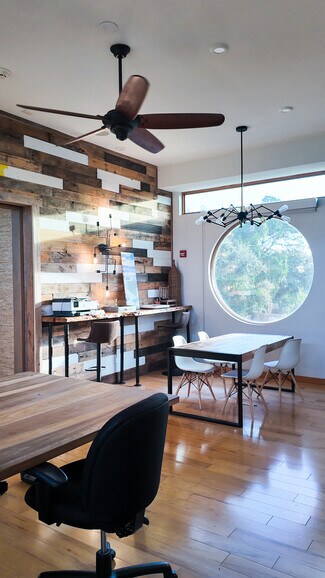 Wonderful Professional Office space less than 5 blocks to Atlantic Beach. Space was completely renovated in 2018 for multiple work stations and group cooperation as needed between staff. The space offers comfort and different areas for work. Large Conference room for private or staff meetings. There is a Studio Space for video work or you can set up a warehouse, office or storage room. Space has a beachy relaxed vibe that appeals to both Gen Z workers or anyone who wants to enjoy the environment. There are large office work platforms that can be left or you can configure the space to your needs. All the amenities of the beach are within walking distance. Up to 13 parking spaces are available with a security system in place. High speed Wifi is on site. Lease is a Gross lease and the tenant is responsible for electric and internet utilities.
