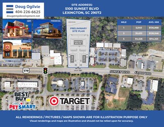 This 3.3-acre site offers a prime development opportunity in Lexington’s high-growth corridor. Positioned along Sunset Boulevard (US-378), the property benefits from exceptional visibility and a daily traffic count of approximately 43,000 vehicles. Zoned for commercial use, the parcel supports a building footprint of up to 12,160 SQFT, making it ideal for Medical, Financial, QSR, or Retail development.
