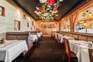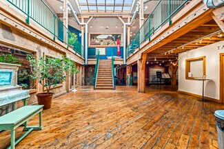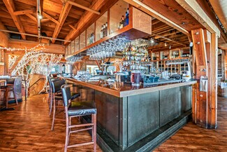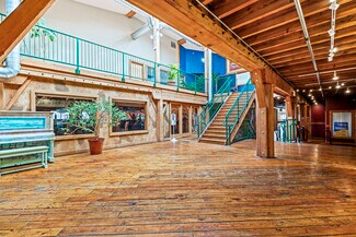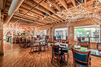 The building itself offers a distinctive architectural character, featuring exposed rustic beams and heavy hardwood flooring that create an inviting and authentic environment well-suited for a variety of retail and service-oriented uses.