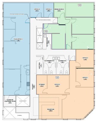 • Flexible floor plan with open areas and ability to add separate offices, conference rooms, and break rooms, depending upon tenant needs