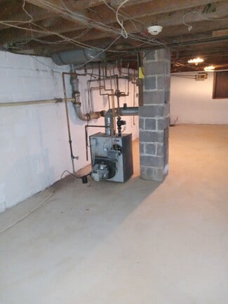 There is also a 2 car garage for additional storage or rental in the rear of the property. Parking for 6 to 10 cars depending on how you mark them. Needs minor renovation. Heating is hot water baseboard in the original section and electric baseboard in the addition. 1 bath with walk in shower. 1 powder room. May be possible to divide the space for two tenants. Full clean basement. Hot water is via summer winter hookup on the boiler. Garage has sub panel for electric and propane heater. No propane at this time so could not verify condition.