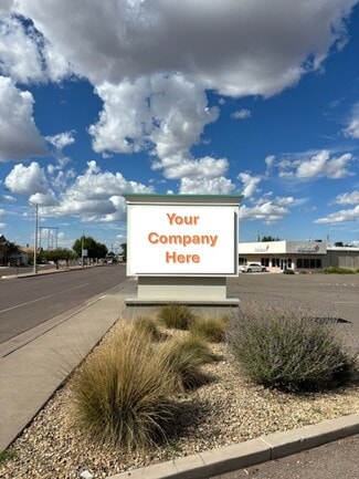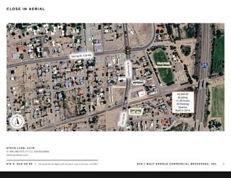 Prominent free standing commercial building with pylon sign along busy thoroughfare in Socorro, New Mexico. Excellent exposure to passerbys. Full access. Just south of the US 60 signalized intersection.