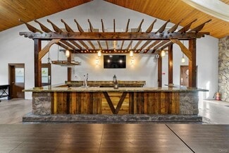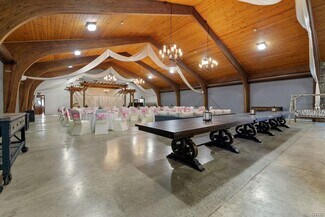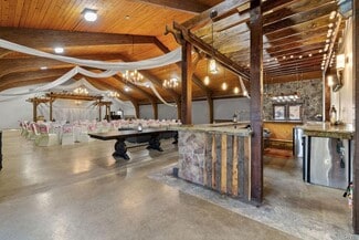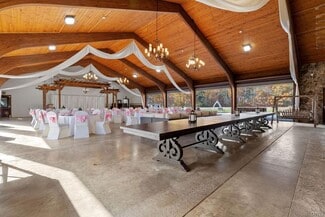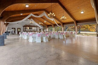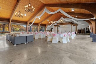 Once part of the historic Nestlé Chocolate Co., this captivating Wedding & Event Center blends natural beauty with modern functionality across more than 68 acres of serene countryside. Designed to host weddings, retreats, and large-scale gatherings, the property is a rare turnkey opportunity surrounded by mature trees, walking trails, and water access via an inlet to the Oswego River. The centerpiece of the property is a beautifully renovated main event building featuring dramatic arched wood-beamed ceilings, warm tongue-and-groove pine paneling, and rustic chandeliers that create an inviting, romantic ambiance. Expansive open-concept interiors accommodate large receptions and ceremonies, enhanced by a custom wood pergola. A full-service bar framed by timber detailing, while polished concrete floors offer both durability and elegance for dining & dancing. Behind the scenes, a commercial kitchen supports catering operations with updated utilities, prep space, and professional-grade equipment. Recent updates include renovated kitchen and restrooms, a new septic system, hydraulic stage, extended gas & water lines, private dressing rooms, switch-controlled stage lighting, and energy-efficient HVAC systems. A 4,000 sq. ft. stamped concrete patio extends the entertainment area outdoors—ideal for cocktail hours, tents, or sunset seating beneath the trees. Additional improvements include a two-car garage with overhead doors, a restroom facility (ready for reactivation), a wooden pavilion & two newly built maintenance and storage buildings—all powered and built on concrete foundations for lasting durability. Beyond the venue, the property offers recreational fields, a basketball court, horseshoe pit, fire pit, & wooded trails leading to river access, creating limitless possibilities for weddings, festivals, or corporate retreats. With proposed expansion plans already envisioned, this property offers outstanding potential for continued growth—whether adding cabins, suites, or an expanded pavilion area. A rare opportunity combining rustic elegance, modern amenities, and natural beauty, ready to become Central New York’s premier event destination.