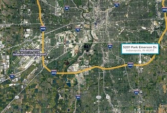Space Available: 75,636 SF Office Area: 9,800 SF + Mezzanine Storage Rate: $4.00 PSF NNN OpEx: $3.99 PSF (Estimated) Term: Sublease Thru 7/31/2027 Clear Height: 24’ - 26’ Column Spacing: 30’ x 50’ Loading: 12 (8’ x 9’) Dock Doors 4 (12’ x 14’) Drive-In Doors Auto Parking: ±70 Spaces Sprinkler: ESFR Lighting: LED Direct Access: I-465 via Emerson Exit Zoning: I-1