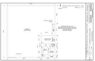 - OFFICE & OTHER SPACES: ± 1,282.8 Sq. Ft. (approx. 21.56% of the total area), excluding the warehouse space. The first floor features a welcoming entrance reception area, one office, one bathroom, a spacious conference room with a coffee station, and a closet or storage room that can also serve as a future IT room. The second floor includes one bathroom, a versatile filing/storage room, and three offices—each equipped with its own closet space for storage.