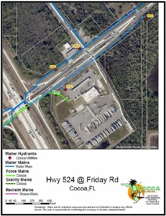 19.50+- acres in three parcels according to Brevard County Tax Roll Parcel # 1: Account #: 2407123 -5.09+-acres Parcel # 3: Account #: 2407127 -0.2+-acres Total: 5.29+-Acres Parcel # 2: Account #: 2407979 - 14.21+- acres Note: Parcel # 2 has a 3.80+- Wetland Area per FEMA Maps 573+- Frontage on State Road 524 1,381+- Frontage on I-95 835+- Frontage on Friday Rd Note: Restricted Uses from the site are: (a) Truck Stop; or (b) Retail gasoline sale facilities with more than Two (2) diesel lanes. (Gasoline sales are NOT subject to the Restrictive Covenants. See, ORB 7837, page 1587 and ORB 7837, page 1607, both of the Public Records of Brevard County, FL.)