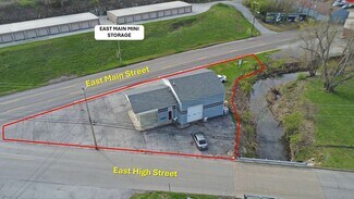The site spans approximately 0.35 acres and includes frontage along East Main Street and East High Street, enhancing accessibility for customers and deliveries. With electric and water utilities on-site, the property is ready for immediate occupancy. Located just 1.8 miles from I-64 and 1.3 miles from the Bypass, tenants benefit from quick regional connectivity. Surrounding businesses include retail, service, and storage facilities, contributing to a strong commercial environment. This property is well-suited for automotive services, small-scale industrial operations, or specialty uses requiring open shop space and built-in infrastructure.